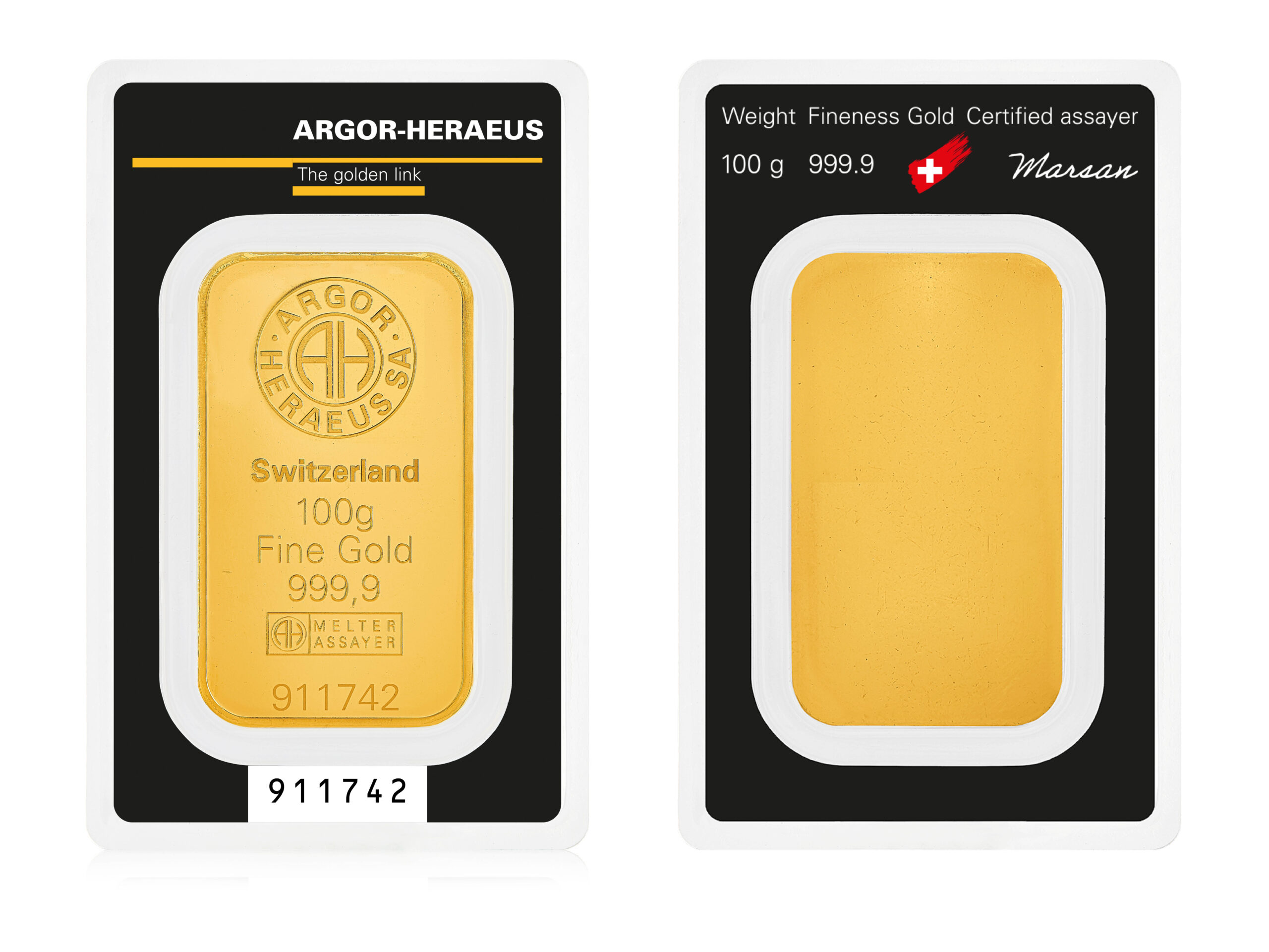 Zlatna poluga od 100 grama proizvedena u švicarskoj rafineriji ARGOR HERAEUS predstavlja idealan ulazak u svijet ulaganja u plemenite metale trajne vrijednosti. Može poslužiti i kao savršen poklon za rođendane, krštenja ili druge posebne prilike. Nalazi se u originalnoj vakumiranoj i plastificiranoj ambalaži (takozvani „blister“) što istovremeno predstavlja i certifikat.
