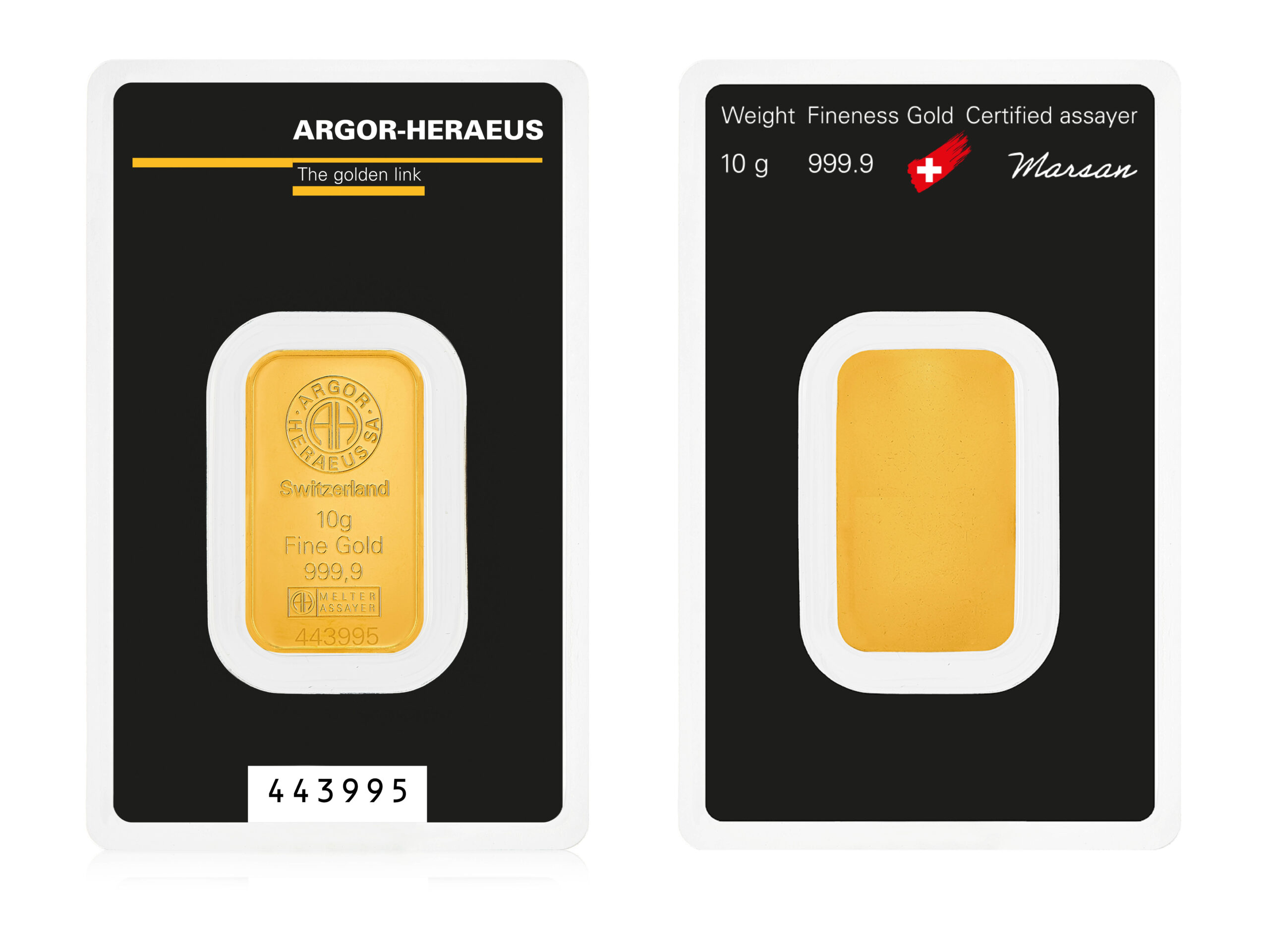 Zlatna poluga od 10 grama proizvedena u švicarskoj rafineriji ARGOR HERAEUS predstavlja idealan ulazak u svijet ulaganja u plemenite metale trajne vrijednosti. Može poslužiti i kao savršen poklon za rođendane, krštenja ili druge posebne prilike. Nalazi se u originalnoj vakumiranoj i plastificiranoj ambalaži (takozvani „blister“) što istovremeno predstavlja i certifikat.