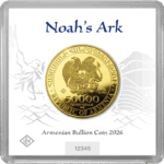 Kovanice od plemenitih metala sa motivom “Noina arka” 2026 izdaje Središnja banka Republike Armenije i koje služe kao zakonsko sredstvo plaćanja u Armeniji. Proizvodnja podliježe strogim zahtjevima Središnje banke: čistoću plemenitog metala, težinu i kvalitetu kovanja testira i jamči država. Zlatnik je izrađen od najčistijeg zlata (999,9/1000).